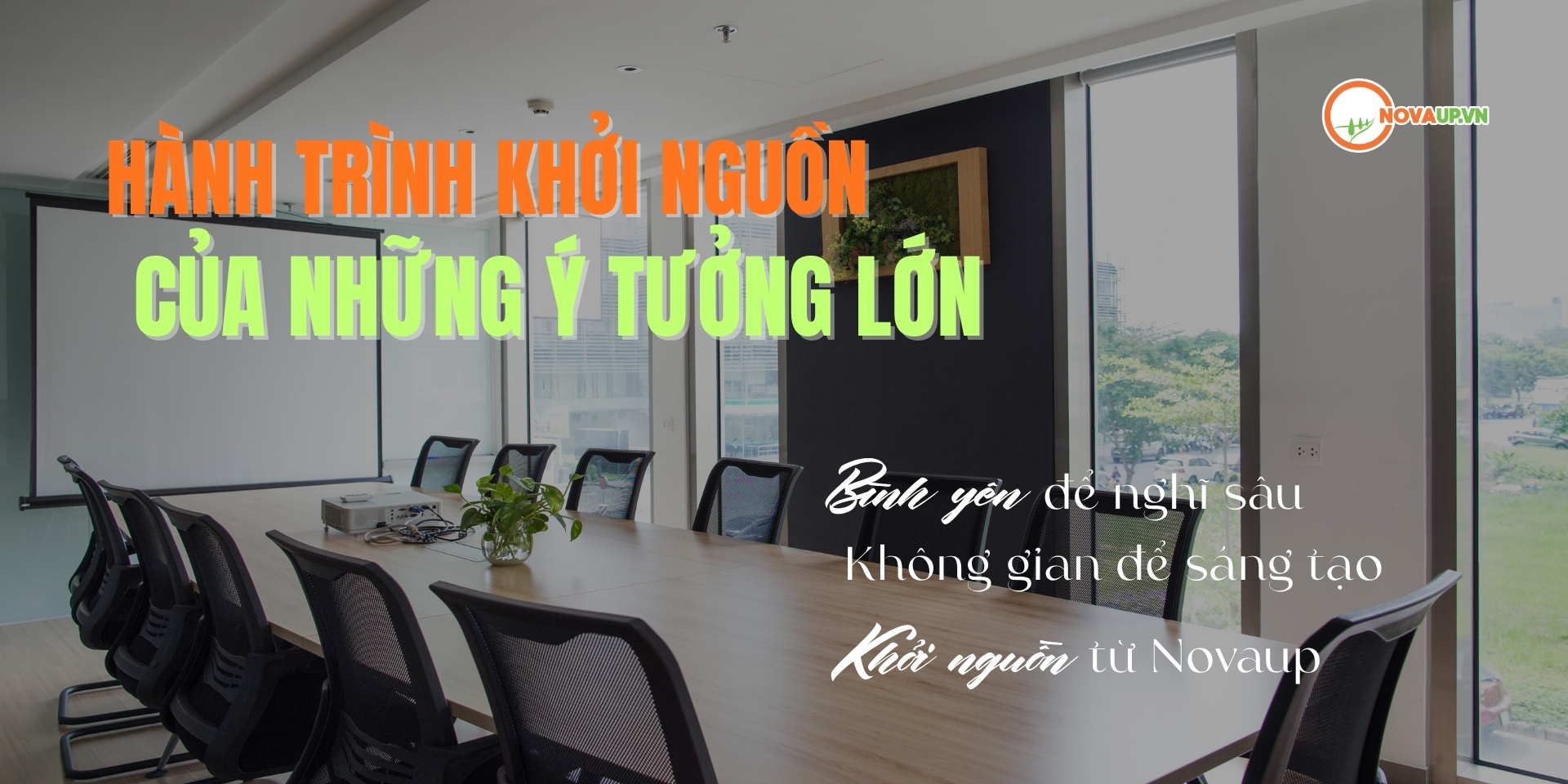 Tại Novaup, chúng tôi mang đến một không gian phòng họp hiện đại, tinh gọn và ngập tràn ánh sáng tự nhiên – nơi từng ý tưởng được khởi nguồn và từng cuộc họp trở nên hiệu quả hơn.
