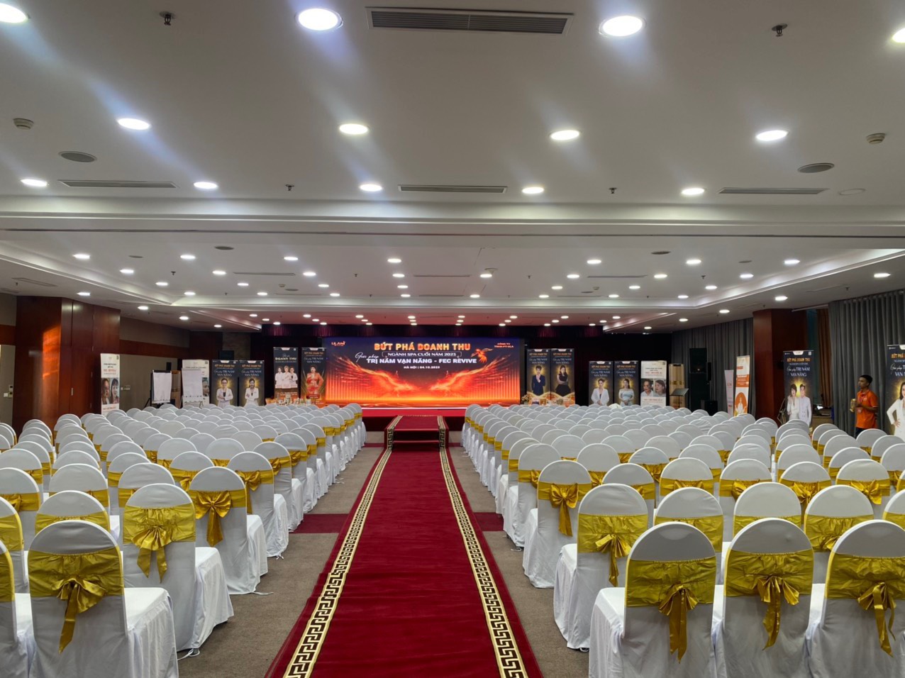Không gian hiện đại, lịch sự, được trang bị đầy đủ dàn âm thanh, máy chiếu, màn led, wifi, khung backdrop, bàn ghế, bảng viết, giấy A1, bút viết,…