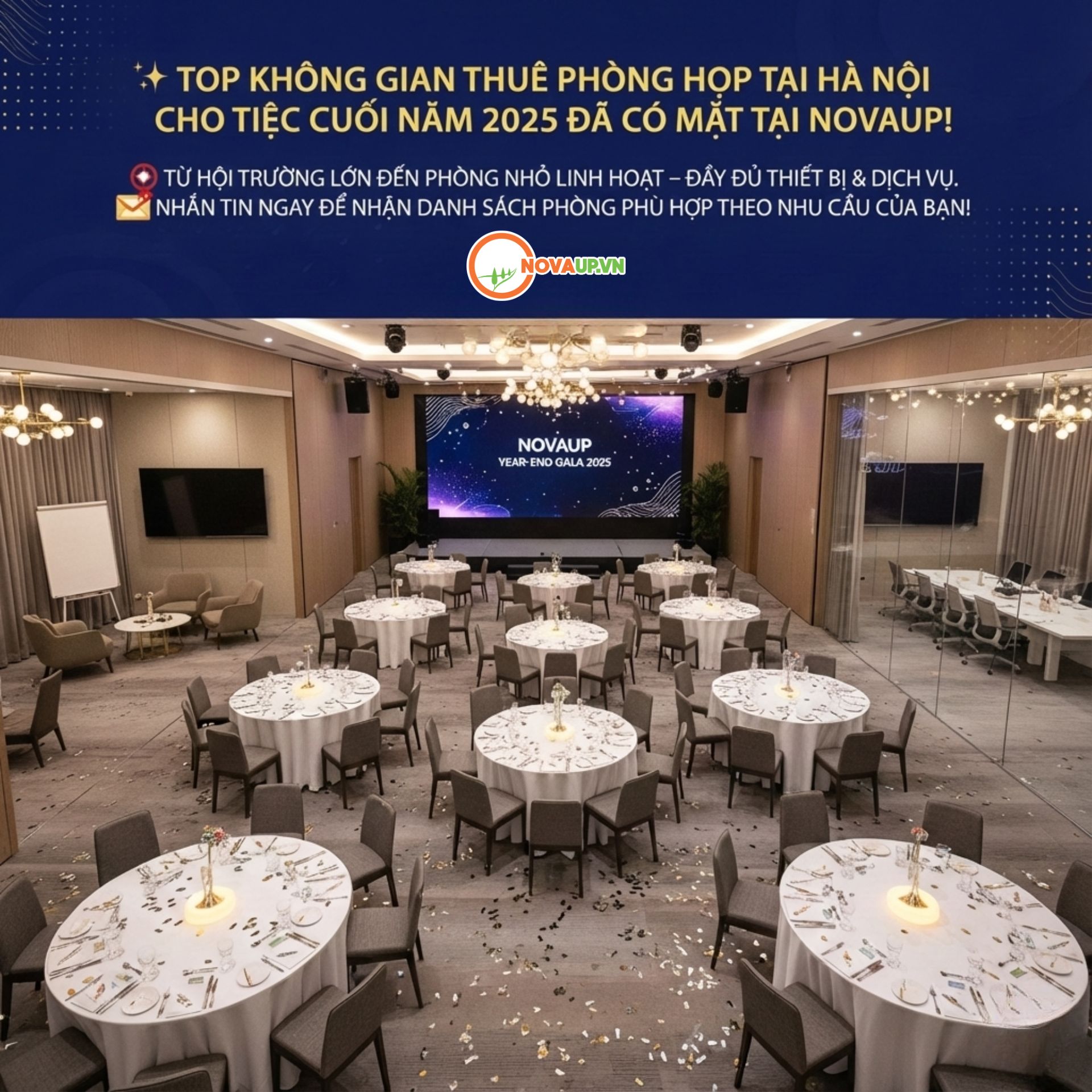 NovaUp cho thuê địa điểm tổ chức sự kiện tại Hà Nội: phòng 10–1000 khách, thiết bị hiện đại, giá minh bạch, nhiều ưu đãi, 5 mẹo tránh phí ẩn.