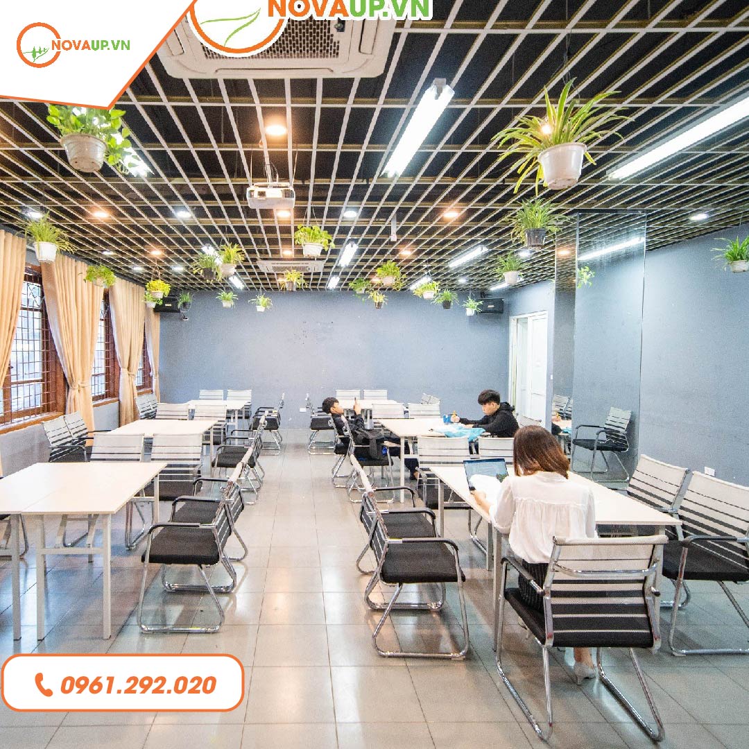 Thuê phòng workshop Hà Nội tại NovaUp: không gian đẹp, giá rẻ, đa dạng sức chứa 10–1000 người, đủ thiết bị, hỗ trợ teabreak, tư vấn nhanh qua hotline.