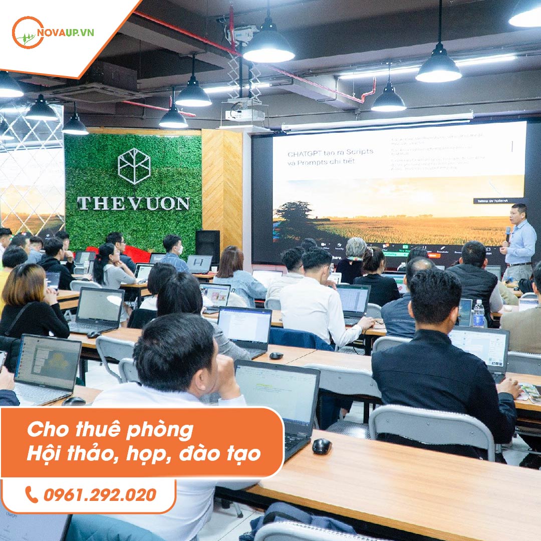 NovaUp chuyên cho thuê phòng đào tạo, workshop tại Hà Nội. Phòng tiêu chuẩn, hiện đại, full tiện ích (giáo cụ, Teabreak), sức chứa linh hoạt 20-100 người. Đặt phòng ngay!