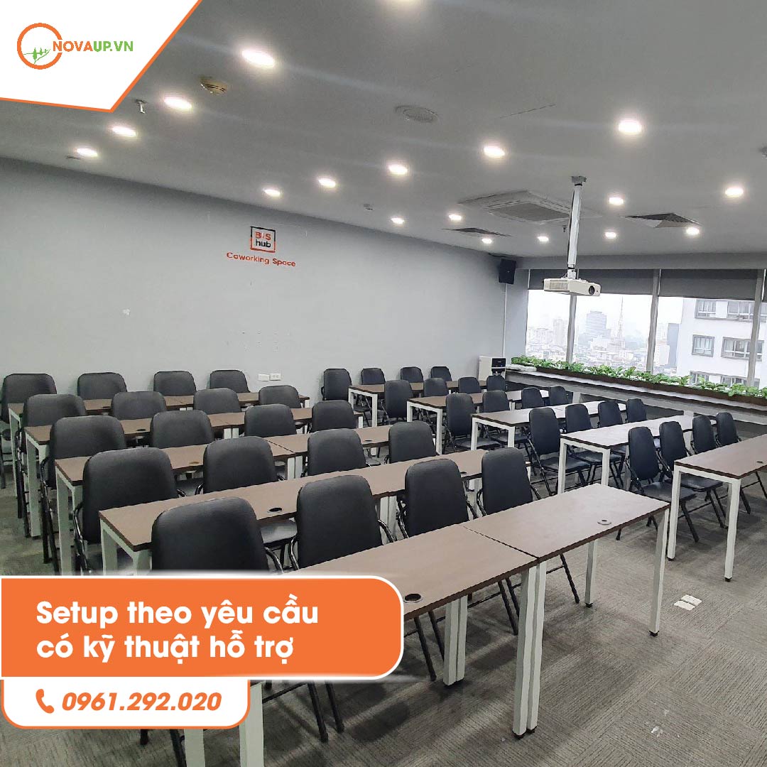 Novaup chuyên cho thuê phòng sự kiện 30-50 người tại Hà Nội, thiết kế chuẩn cho workshop, đào tạo. Khám phá Nova Hòa Bình Classroom, Nova Interconnection...
