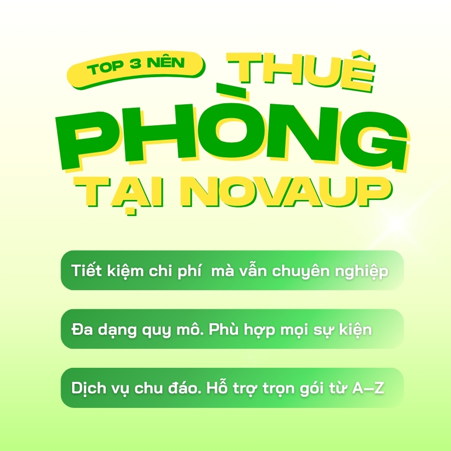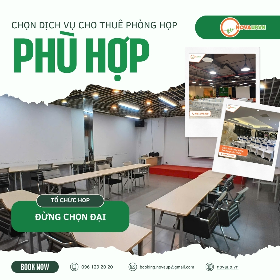 Một trong những đơn vị tiên phong cung cấp mô hình phòng họp – hội thảo chuyên nghiệp, linh hoạt là Novaup, hệ thống không gian sự kiện được nhiều doanh nghiệp và tổ chức tin chọn trong năm 2025.