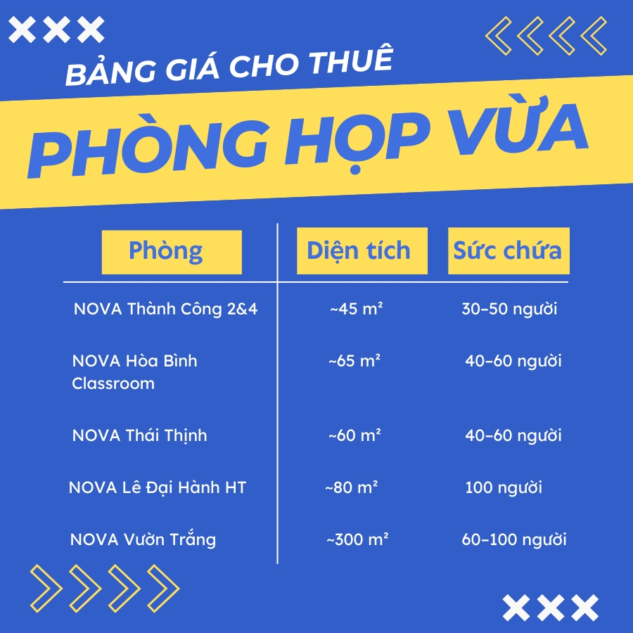 Tại Hà Nội, các quận trung tâm như Ba Đình, Đống Đa, Cầu Giấy, Thanh Xuân, Hà Đông, Hai Bà Trưng, Nam Từ Liêm, Mỹ Đình là những “điểm nóng” được doanh nghiệp ưu tiên lựa chọn khi thuê phòng họp. NovaUp nổi bật trong số đó với hệ thống phòng rộng khắp, dịch vụ chuyên nghiệp và chính sách giá linh hoạt.