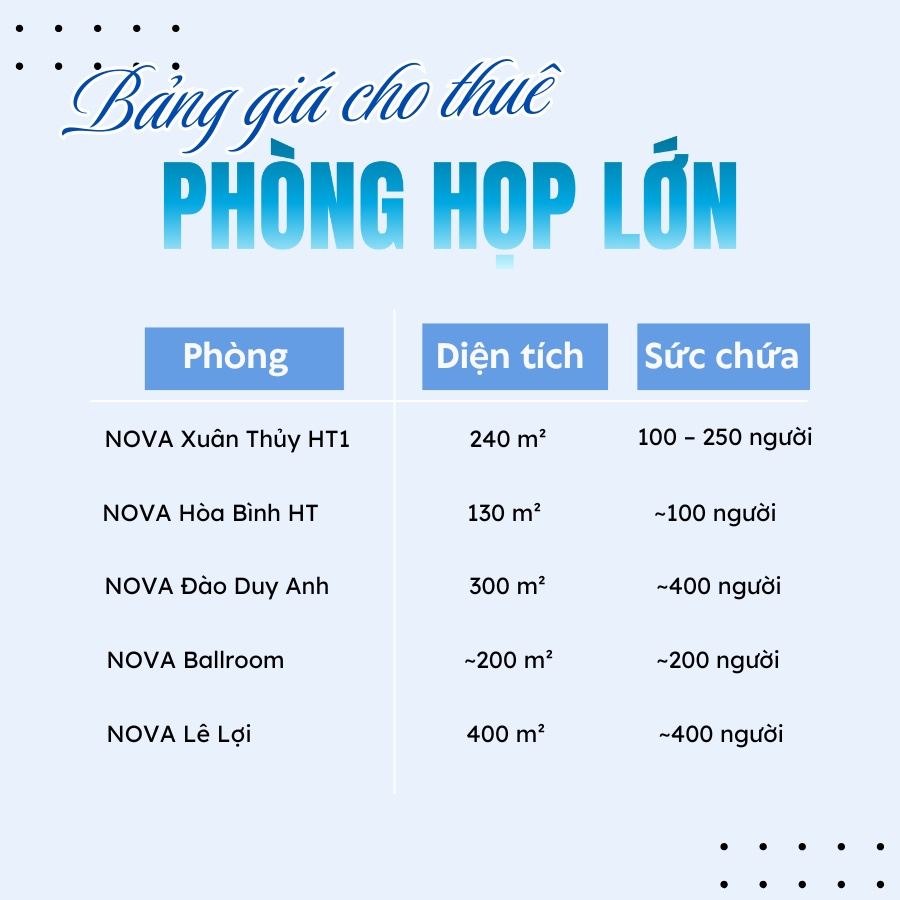 Bảng giá cho thuê phòng họp lớn – Dành cho hội thảo & đào tạo chuyên nghiệp